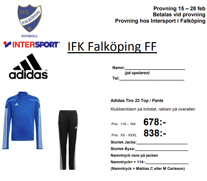 Under perioden 15/2-28/2 pågår årets första beställningsomgång från klubbkollektionen på Intersport. Betalning sker vid beställning, spar kvittot som krävs för uthämtning Beställningsunderlag har skickats ut på mail.