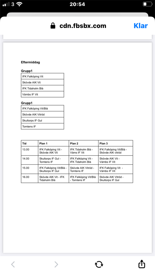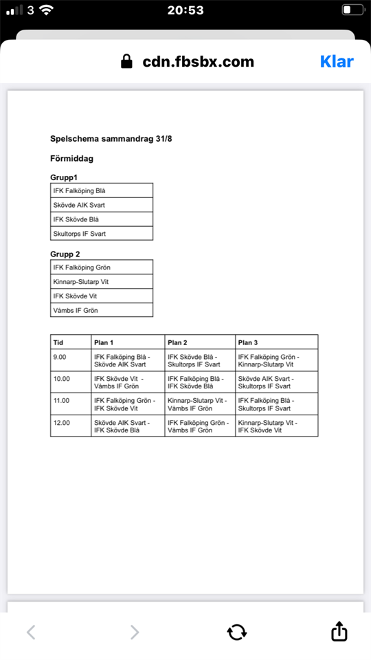 Spelschema eftermiddag 31/8