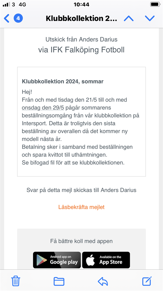 Hej! Från och med tisdag den 21/5 till och med onsdag den 29/5 pågår sommarens beställningsomgång från vår klubbkollektion på Intersport. Detta är troligtvis den sista beställning av overallen då det kommer ny modell nästa år. Betalning sker i samband med beställningen och spara kvittot till uthämtningen. P12 (Födda-14) 21 maj 2024 1kommentar
