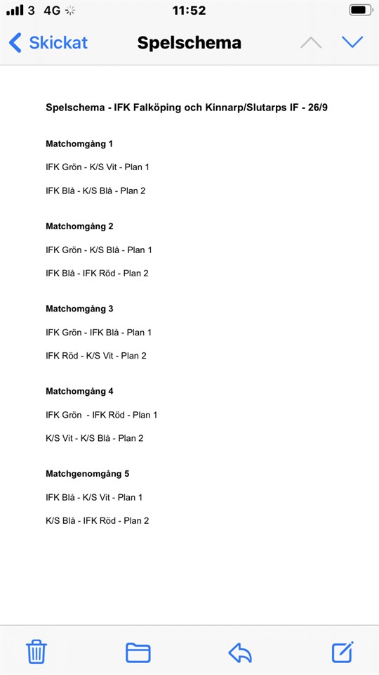 Hej Här kommer dagens spelschema. Vilket lag man spelar i får man reda på när vi samlas.