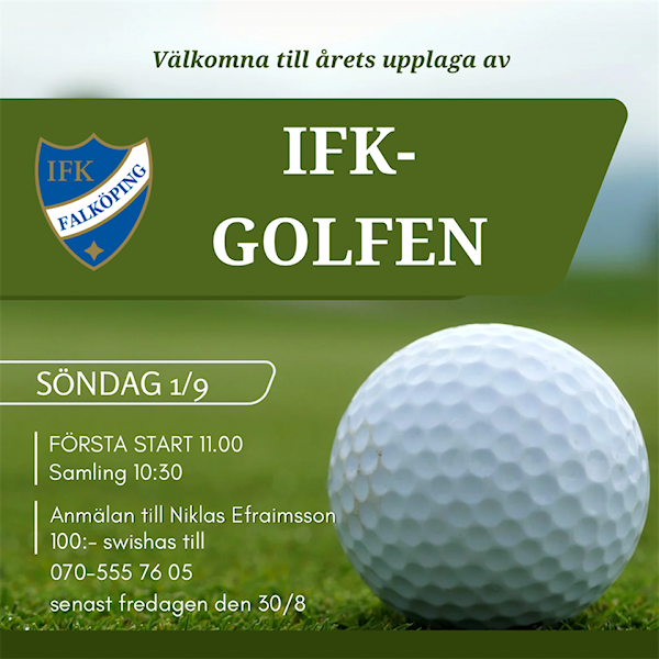 Välkomna till årets upplaga av IFK-golfen. Vi spelar på Berga nu på söndag 1/9 med start från 11.00.  Samling kl 10.30.